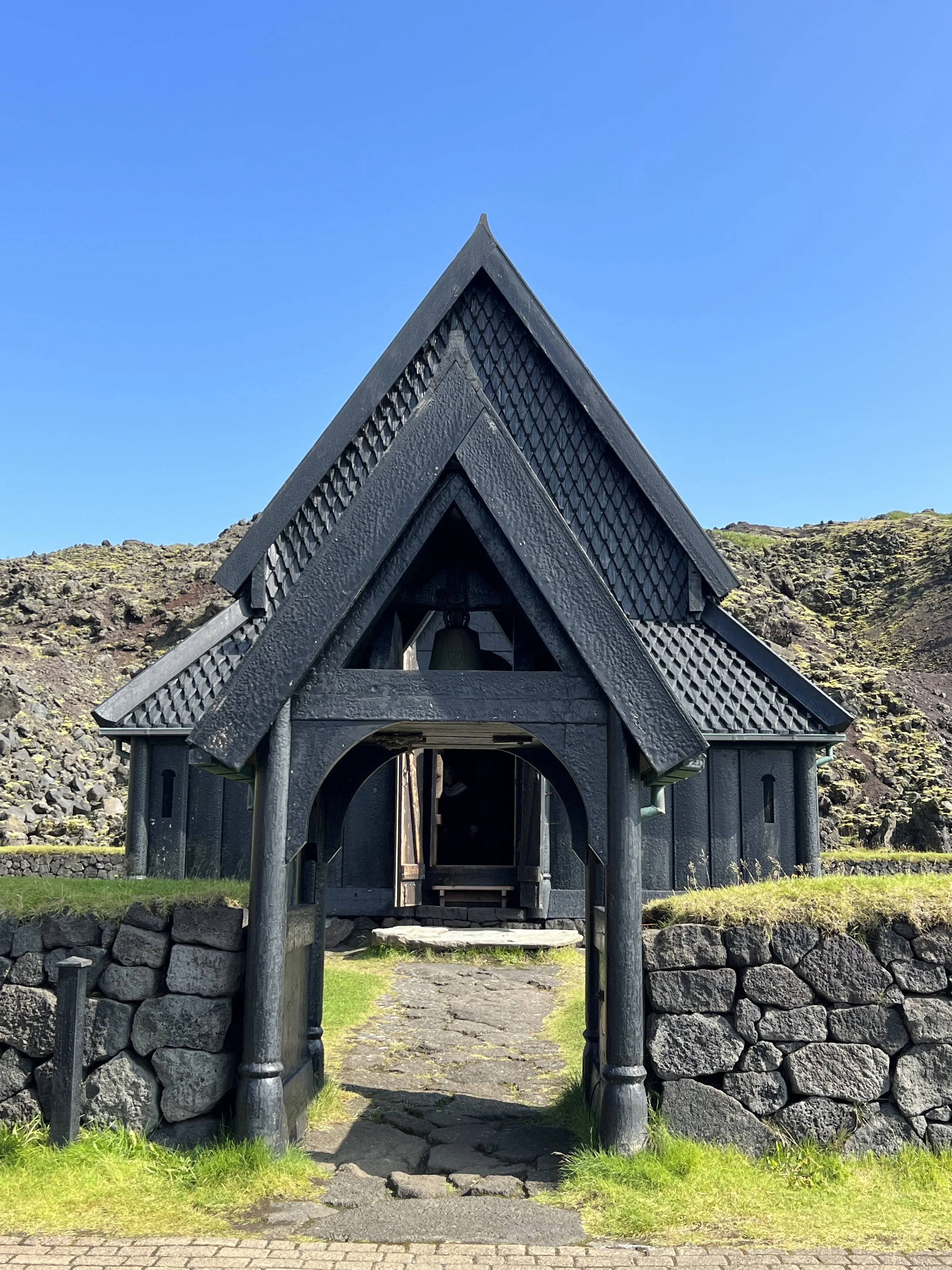 But the reason I wanted to go down to this area was to see the Stave Church (Stafkirkjan). This is a gorgeous black church which was gifted to Iceland by Norway. It was built in the year 2000 to commemorate the 1,000th anniversary of Iceland’s conversion to Christianity, and is a replica of the first church in Vestmannaeyjar. The Norwegians built the church with great care and attention to detail: the timber was selected specially and every single board was worked by hand.