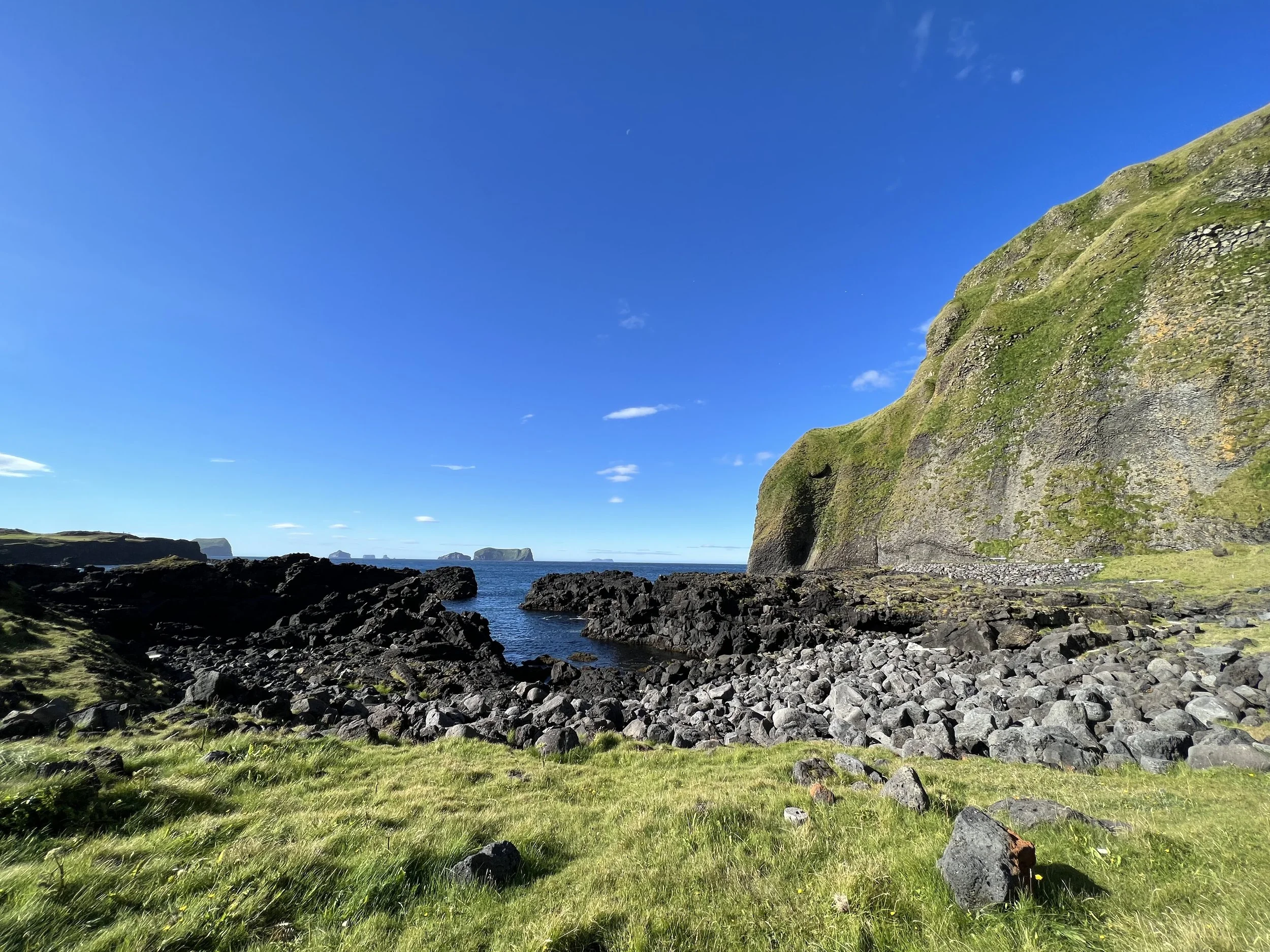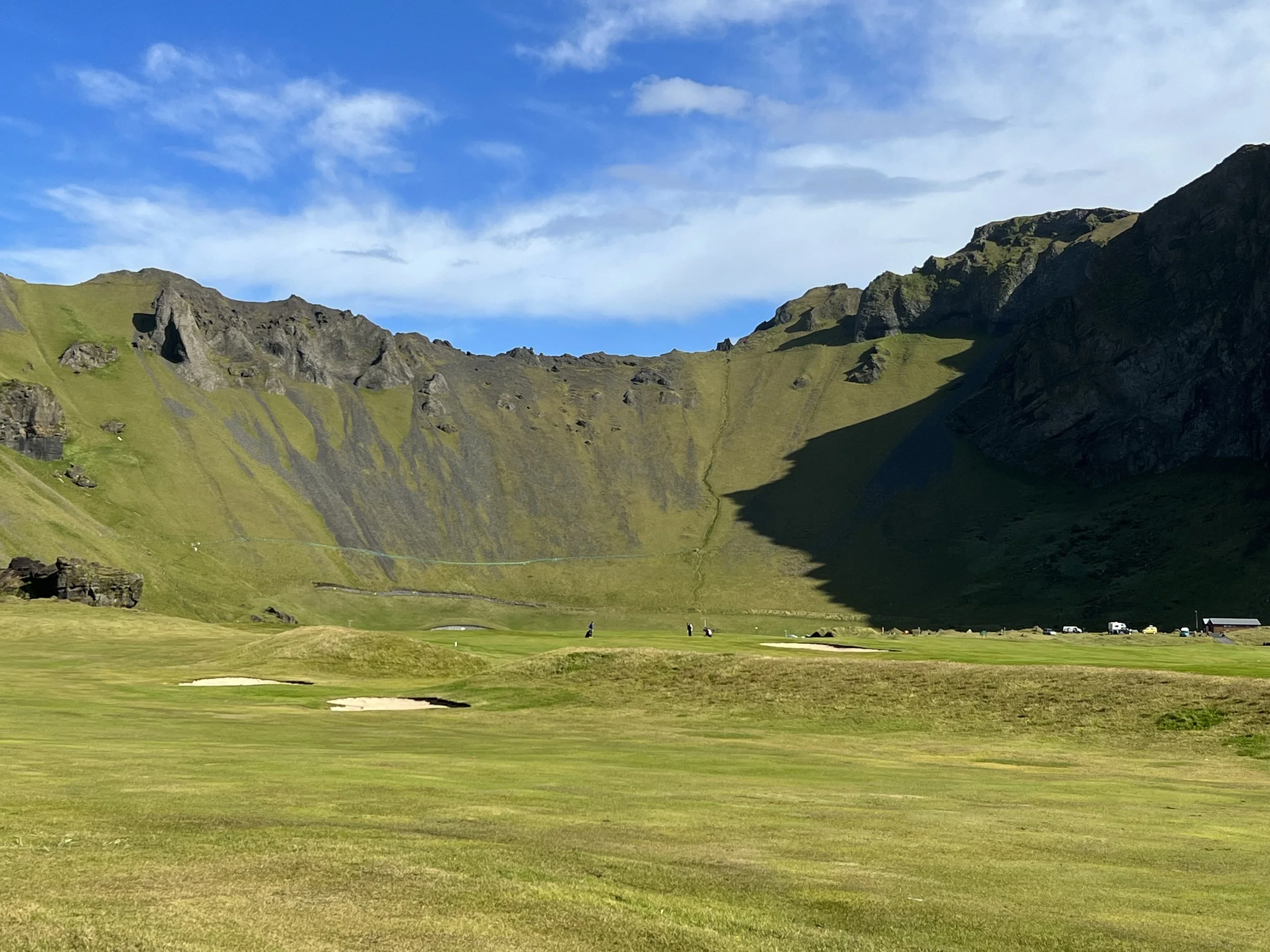 Given that when I came out to Iceland I had never played golf and never imagined I actually would, I assumed I would never get to experience it first-hand but, having had a few lessons I finally got to play the course with Samuel and Matthew last summer. Samuel and Matthew booked to play a round but I got to play Matthew´s par 3 holes and he took the longer ones. It was such fun and is a lovely (if somewhat confusing) course to play. The first 9 holes are within the volcano crater (Herjólfsdalur), while the back 9 are by the ocean.