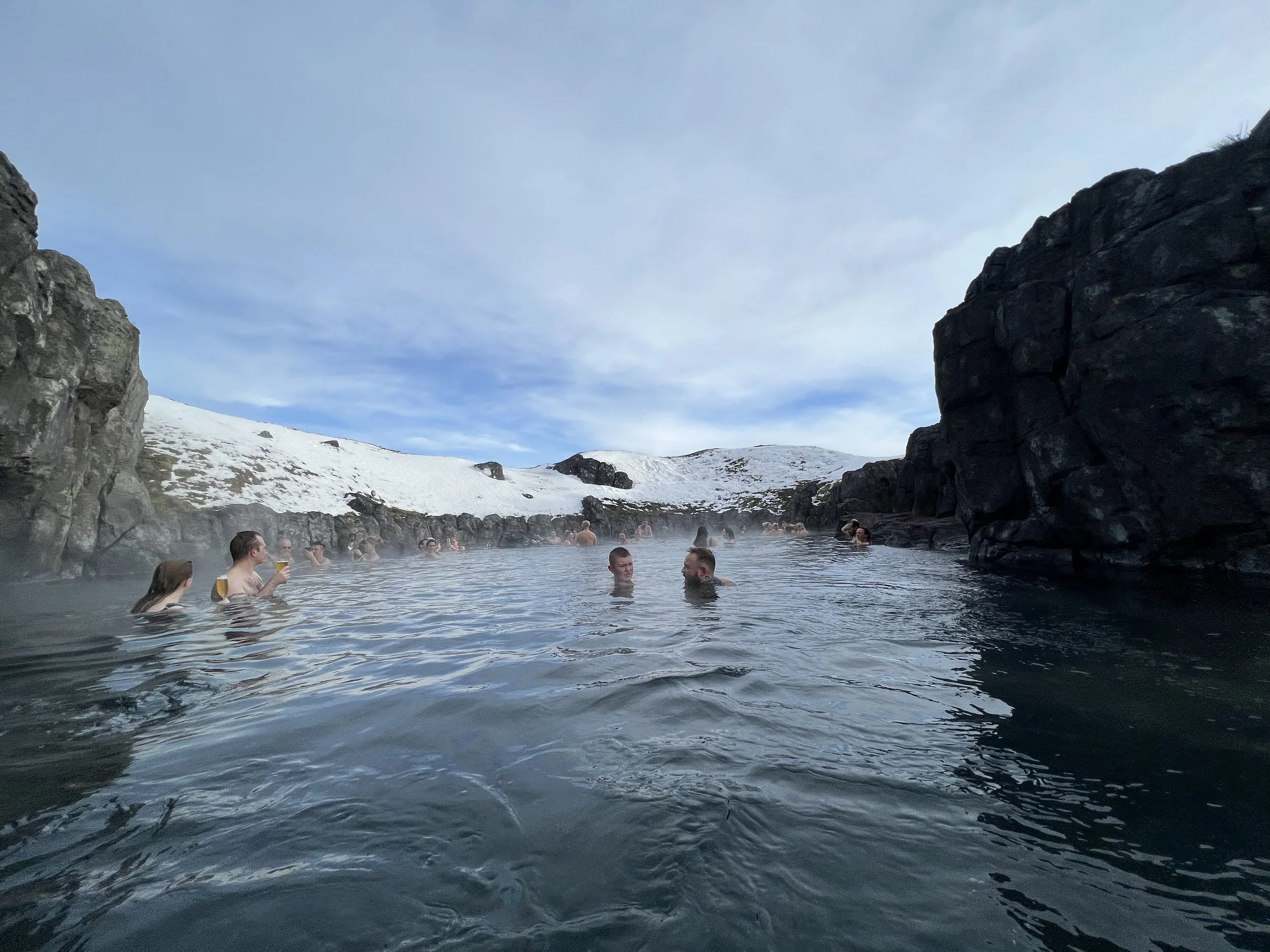 And talking of pampering, this is definitely the place to do it. Once you’ve put your stuff safely in your locker (locked with the wristband of course) you head for the showers and, as is the case everywhere in Iceland you are asked to shower and wash thoroughly without your swimsuit on. After showering and changing you then enter the warm geothermal waters through a cave tunnel and down some shallow steps.